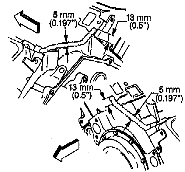 b. Extend the bead 13 mm (0.500 inch) up each cylinder head in order to seal and retain the gaskets.