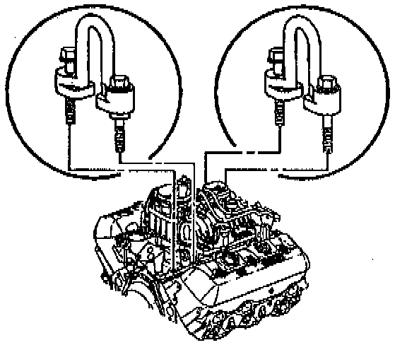 i. Install the universal lift bracket marked LEFT FRONT with the arrow pointing to the front of the engine.