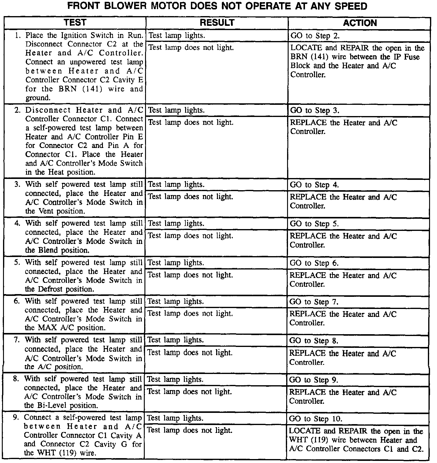 Front Blower Motor Does Not Operate At Any Speed (Part 2 Of 2):
