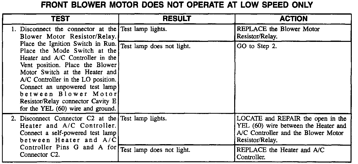 Front Blower Motor Does Not Operate At Low Speed Only: