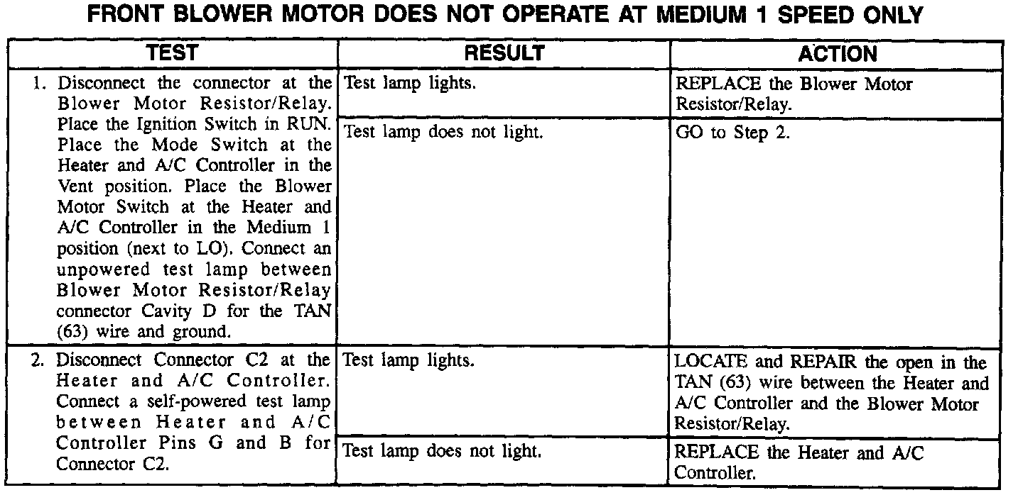 Front Blower Motor Does Not Operate At Medium 1 Speed Only