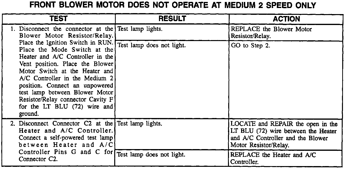 Front Blower Motor Does Not Operate At Medium 2 Speed Only: