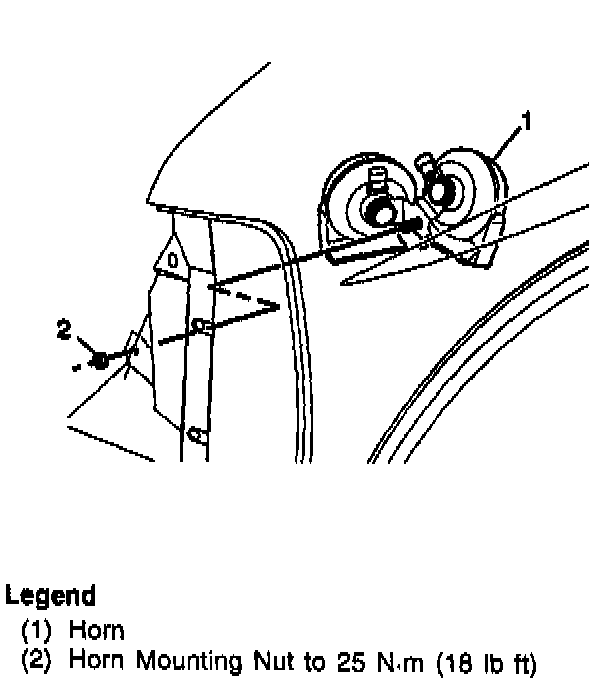 2. The nut to retain the horn mounting bracket to the vehicle.