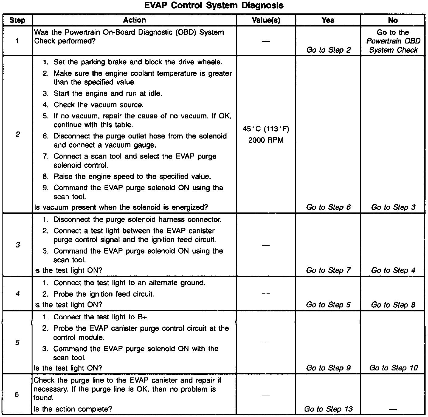 2. Checks to see if a vacuum source is present, along with certain conditions before the purge solenoid is commanded ON. Also shows a change of vacuum as the purge solenoid is being cycled.