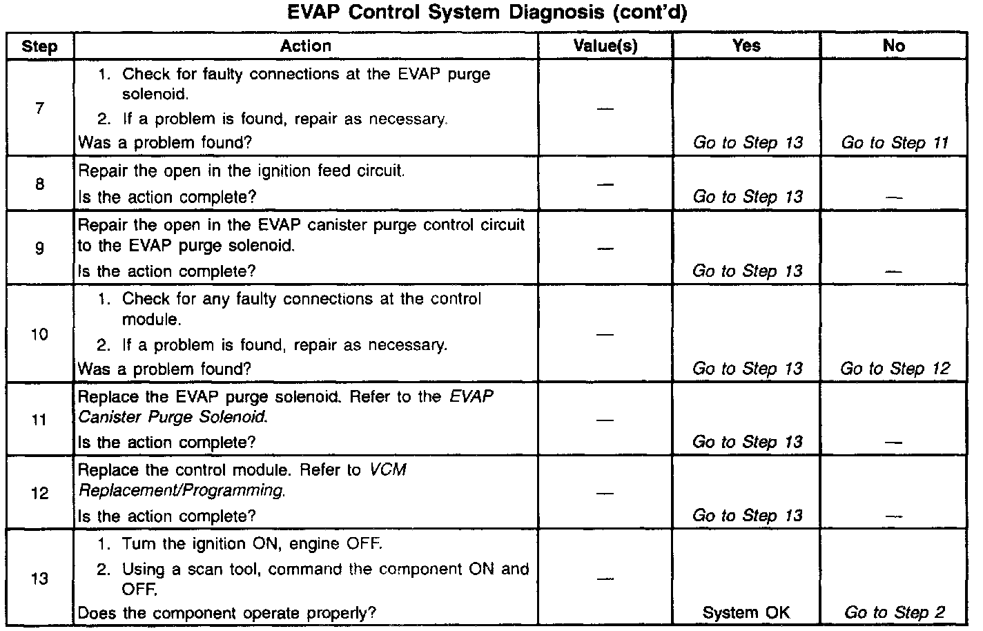 5. Checks for an open EVAP canister purge control circuit or faulty control module.