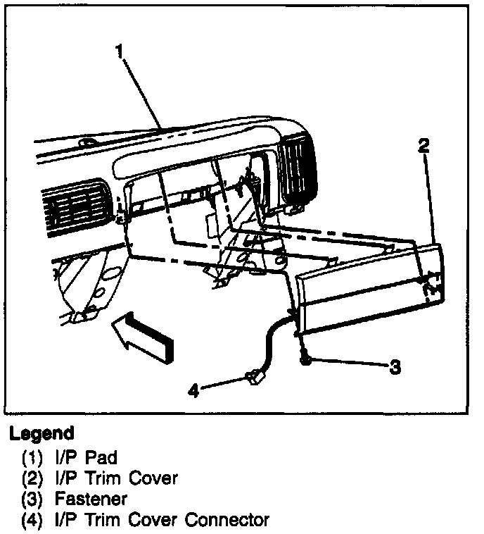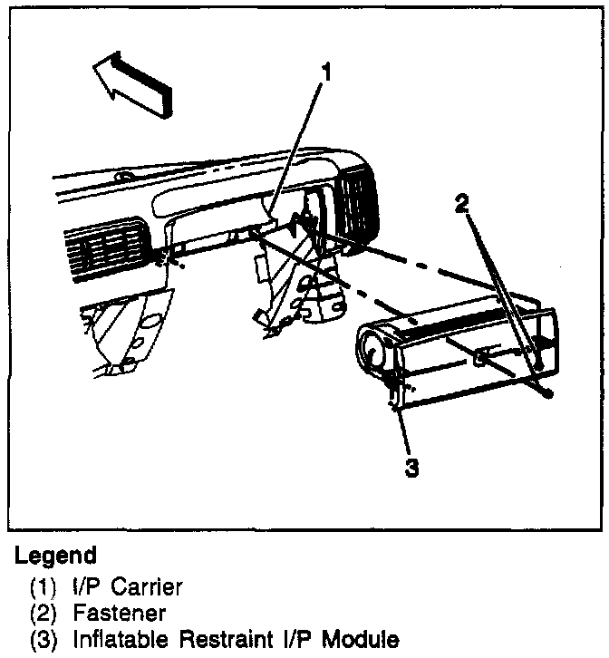 3. Fasteners from the inflatable restraint I/P module (I/P trim cover if equipped with RPO ZX1).