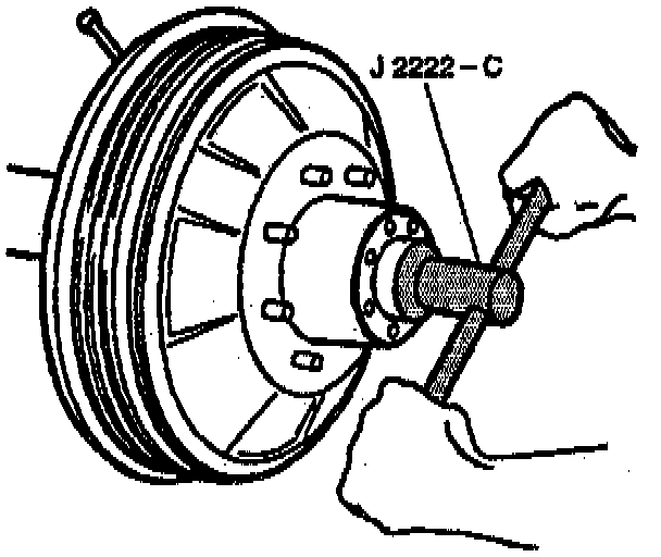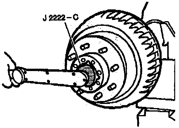 6. The adjusting nut and washer to the axle using J 2222-C.