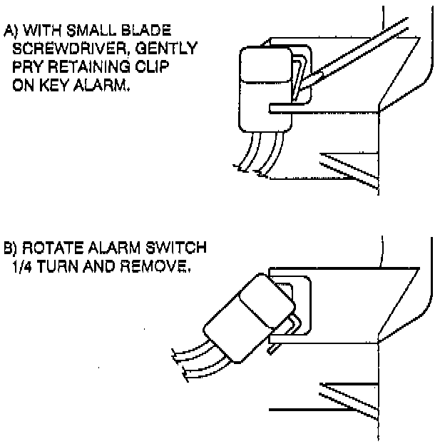 - Gently pry retaining clip on alarm switch with small blade screwdriver.