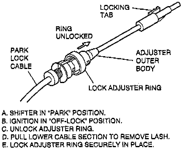 d. Pull on cable until park lock latch contacts gear shift lever.