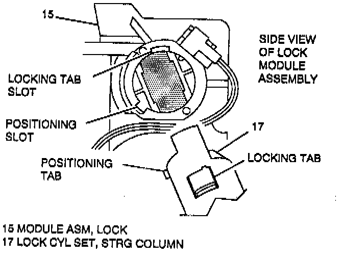 - Line up locking tab with slot in lock module assembly (15) and push into position.