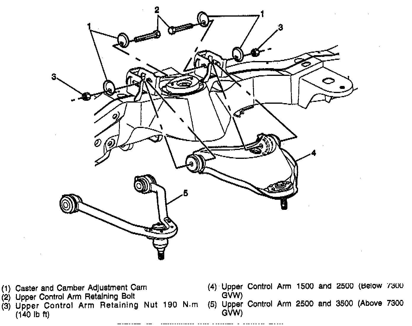 - The upper control arm nuts to 190 Nm (140 ft. lbs.).