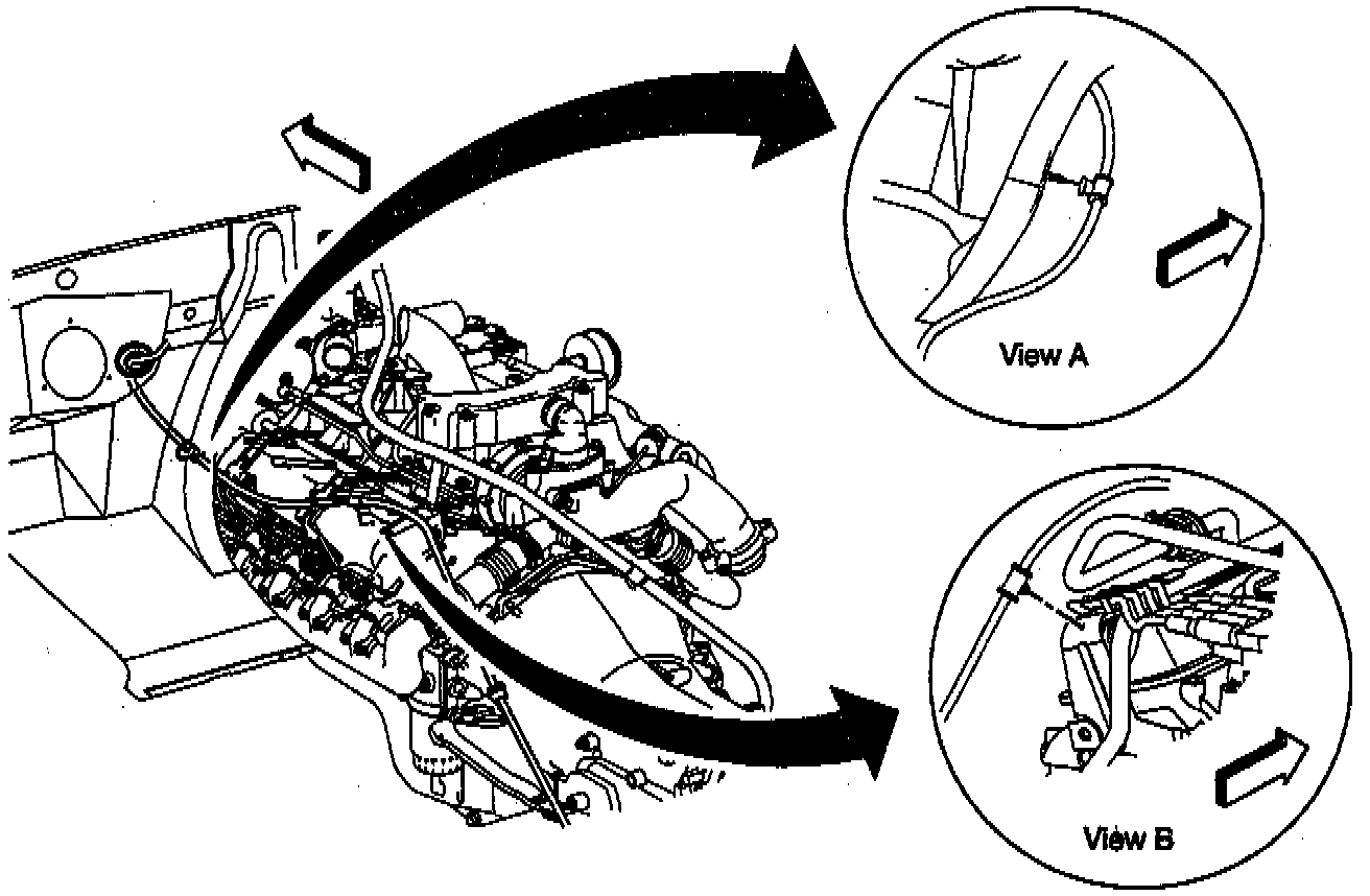 5. Shift cable clips to the engine and transmission brackets.