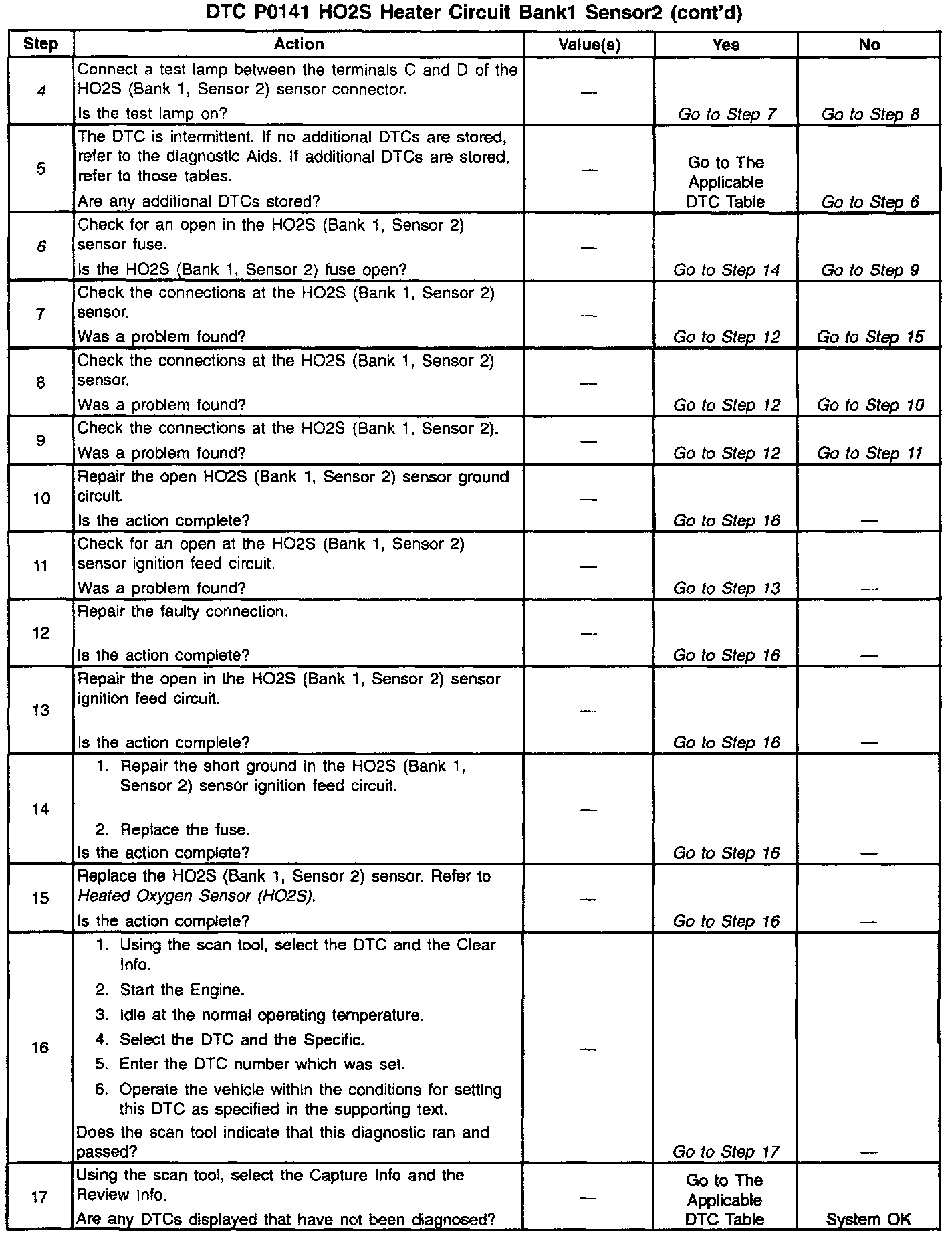 The HO2S heater provides for a faster sensor warm-up which allows the sensor to become an active in a shorter period of time and remain active during long extended idle. The DTC P0141 determines if the HO2S is functioning properly by checking the response time of the sensor. This DTC is a type B DTC.