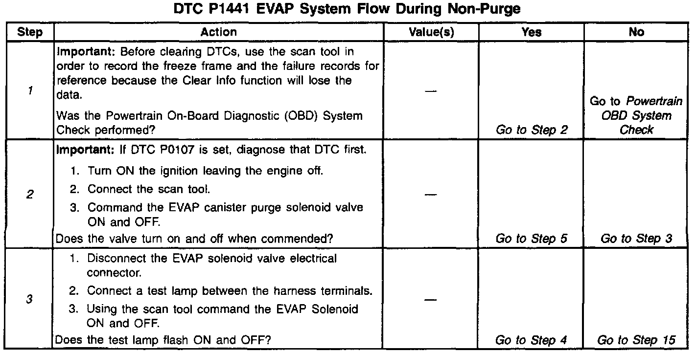 ^ A grounded EVAP purge solenoid driver circuit If any of these conditions are present, a DTC P1441 sets. This DTC is a type B DTC.