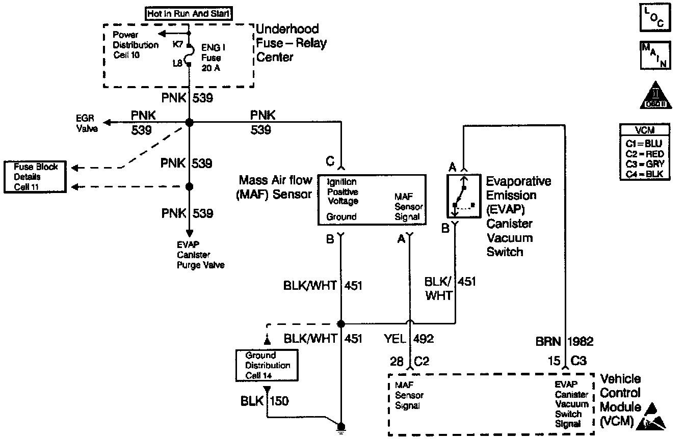 2. The canister purge vacuum switch is normally closed when no vacuum (purge) is present. With the key ON and the engine off, there shouldn't be any vacuum (purge) present in the EVAP System.