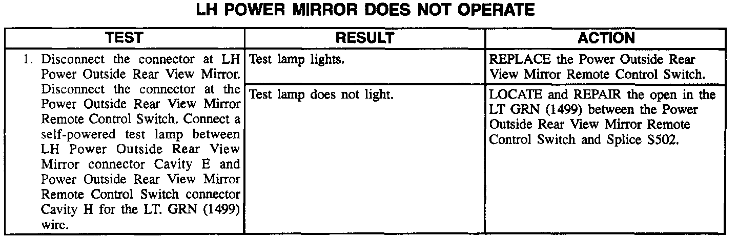LH Power Mirror Does Not Operate: