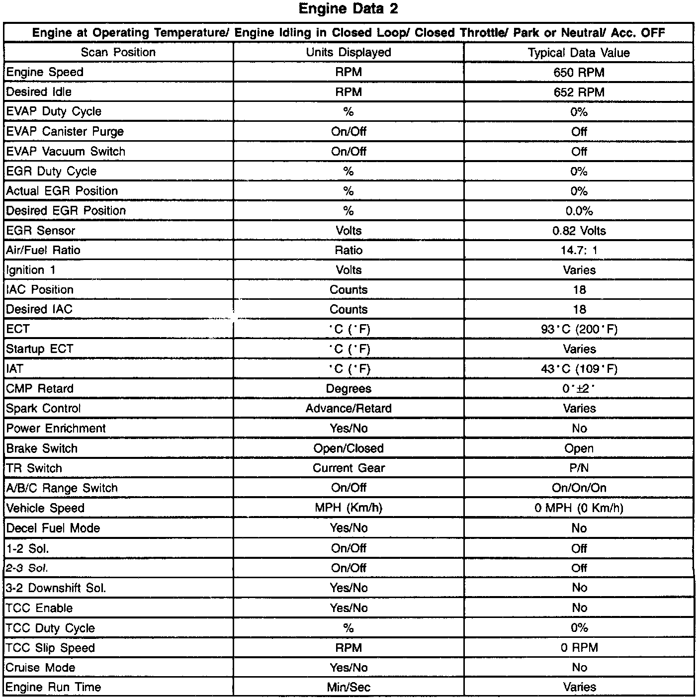 Scan Tool Data List