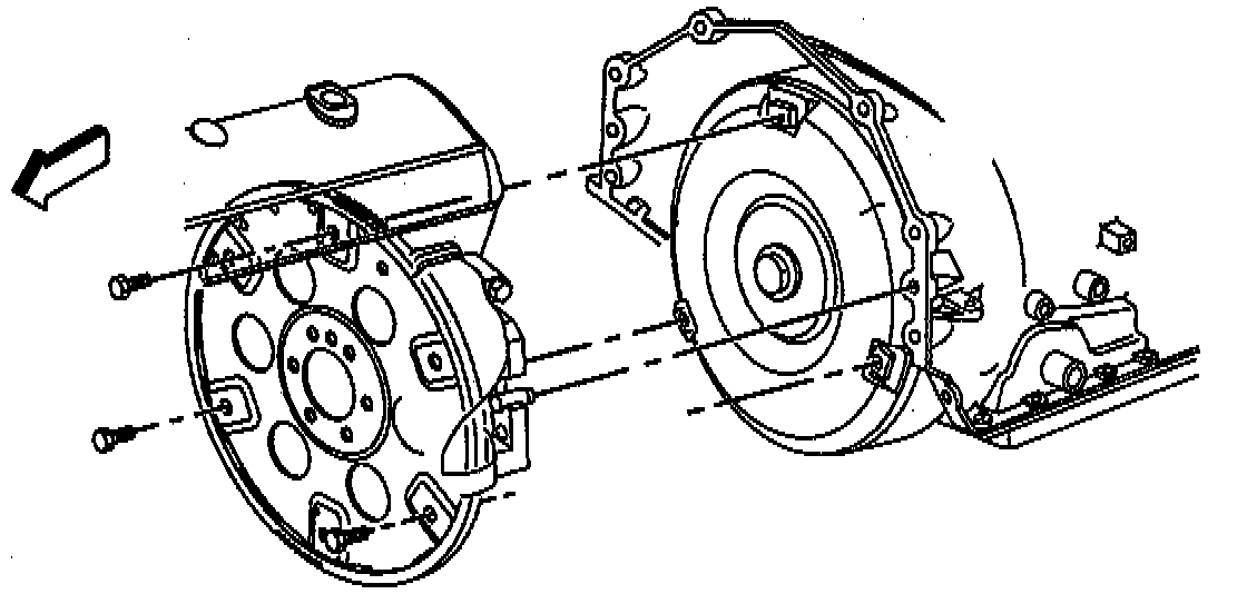 1. Torque converter to the flywheel bolts.