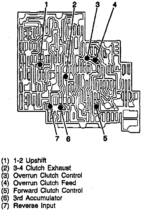 15. 3-4 shift valve bore plug retainer, bore plug, and the valve train.