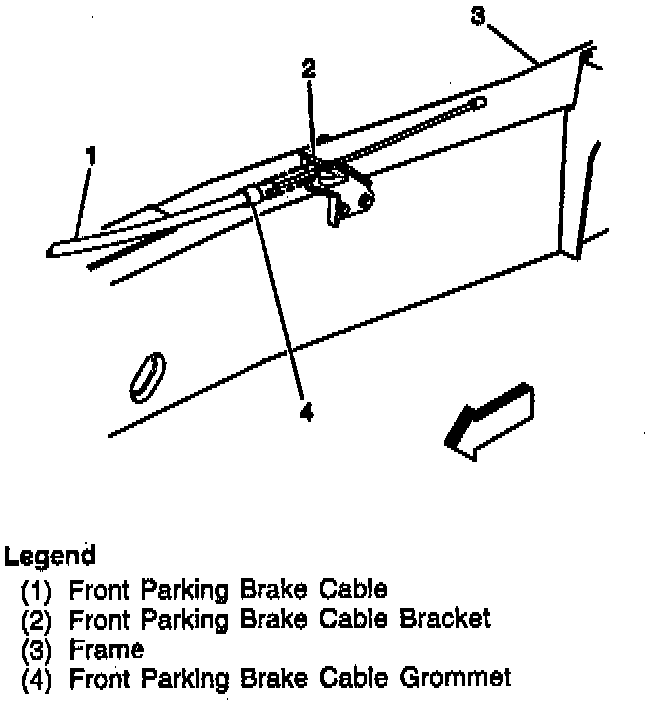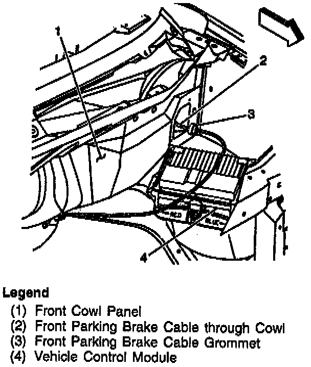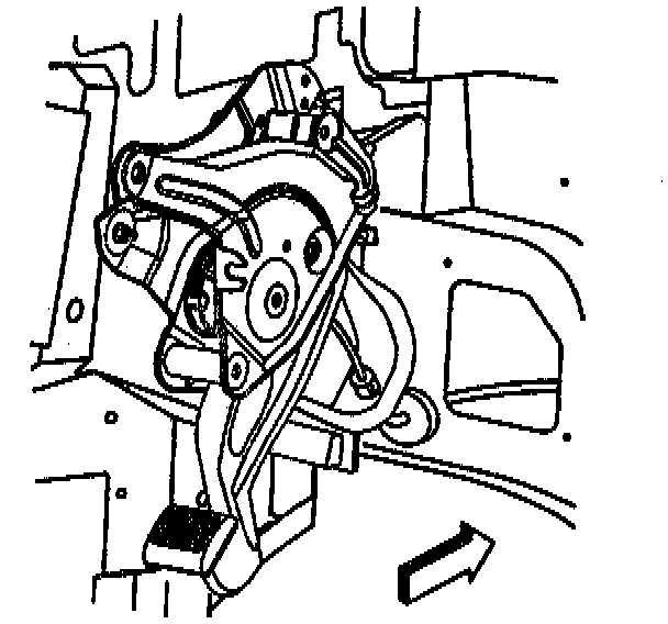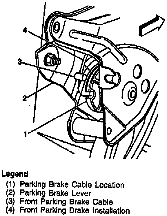 4. The parking brake release handle and cable from the vehicle. Refer to Parking Brake Release Handle.