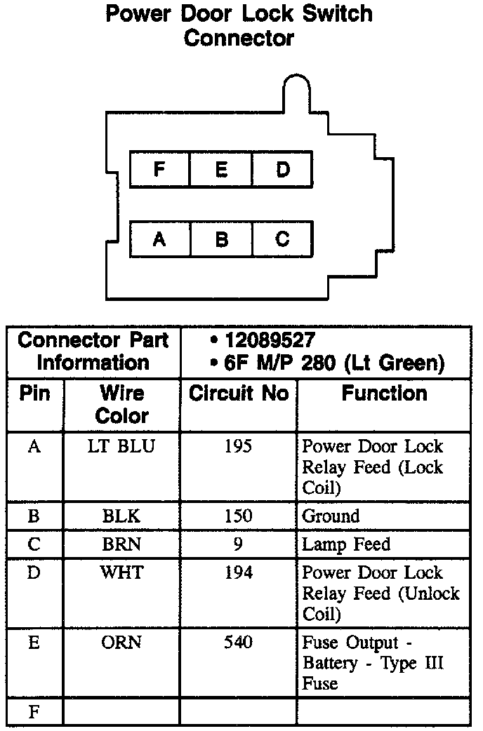 Power Door Lock Switch Connector: