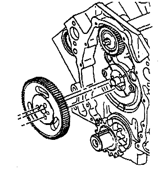 11. Turn the camshaft with the balance shaft drive gear temporarily installed. The timing mark on the drive gear must be straight up.