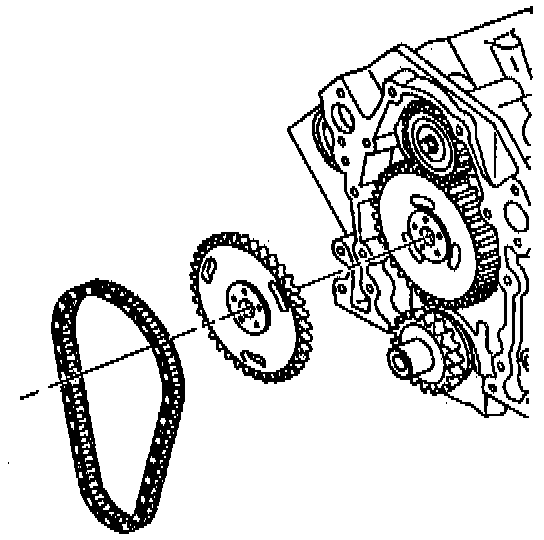 15. Install the camshaft sprocket and the timing chain.