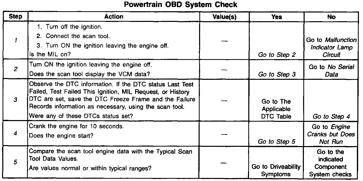 Understanding the table properly reduces the diagnostic time. Proper use of the OBD helps prevent the unnecessary replacement of good pans.