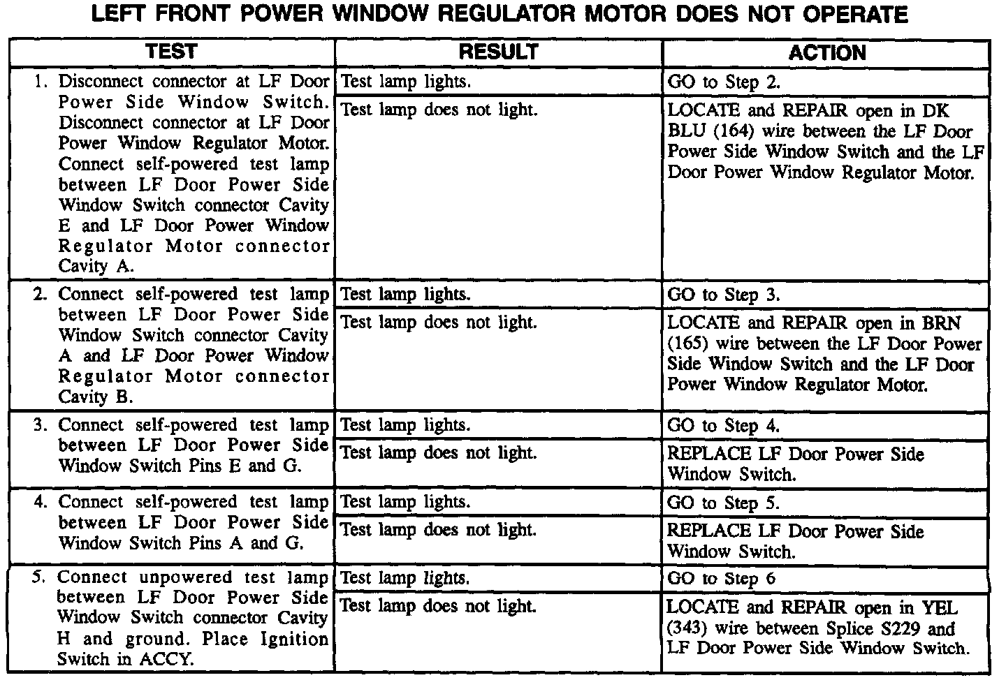 Left Front Power Window Regulator Motor Does Not Operate (Part 2 Of 2):