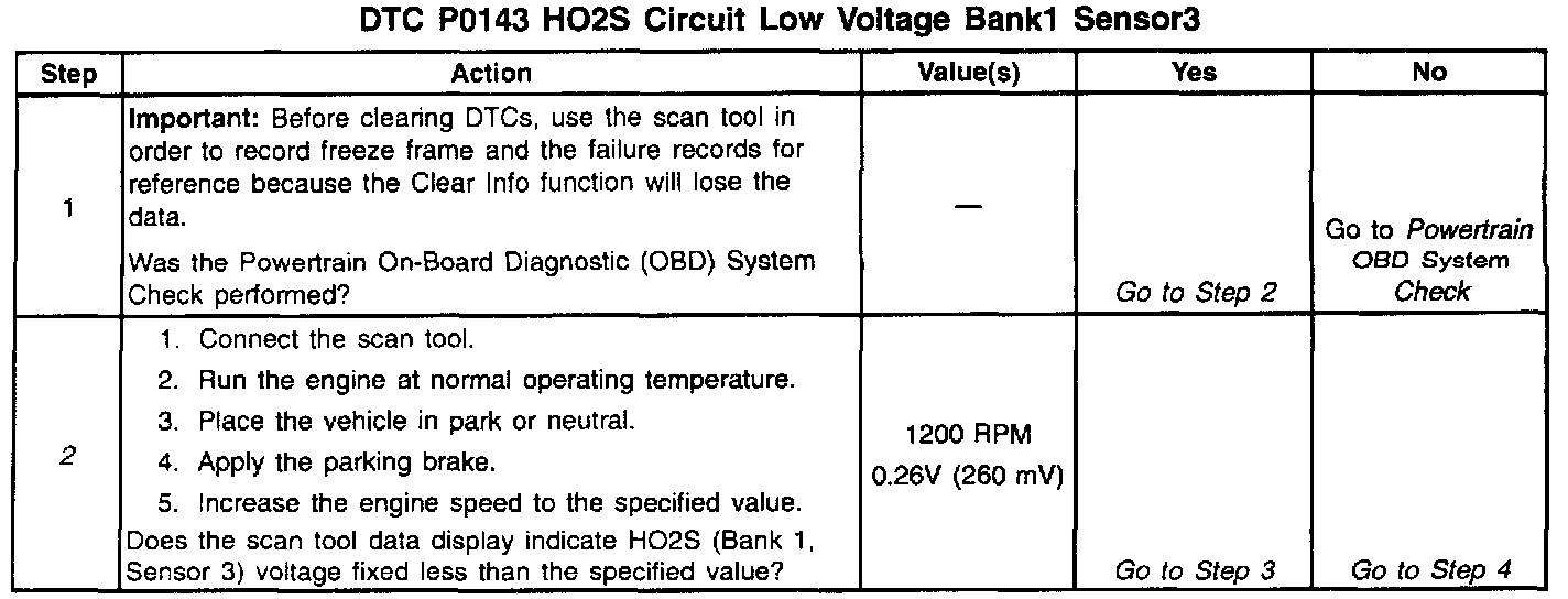 ^ HO2S Bank 1 Sensor 3 voltage is less than 0.086 volts (86 mV).
