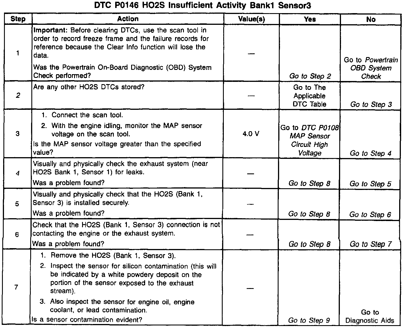 The numbers below refer to the step numbers in the diagnostic table.