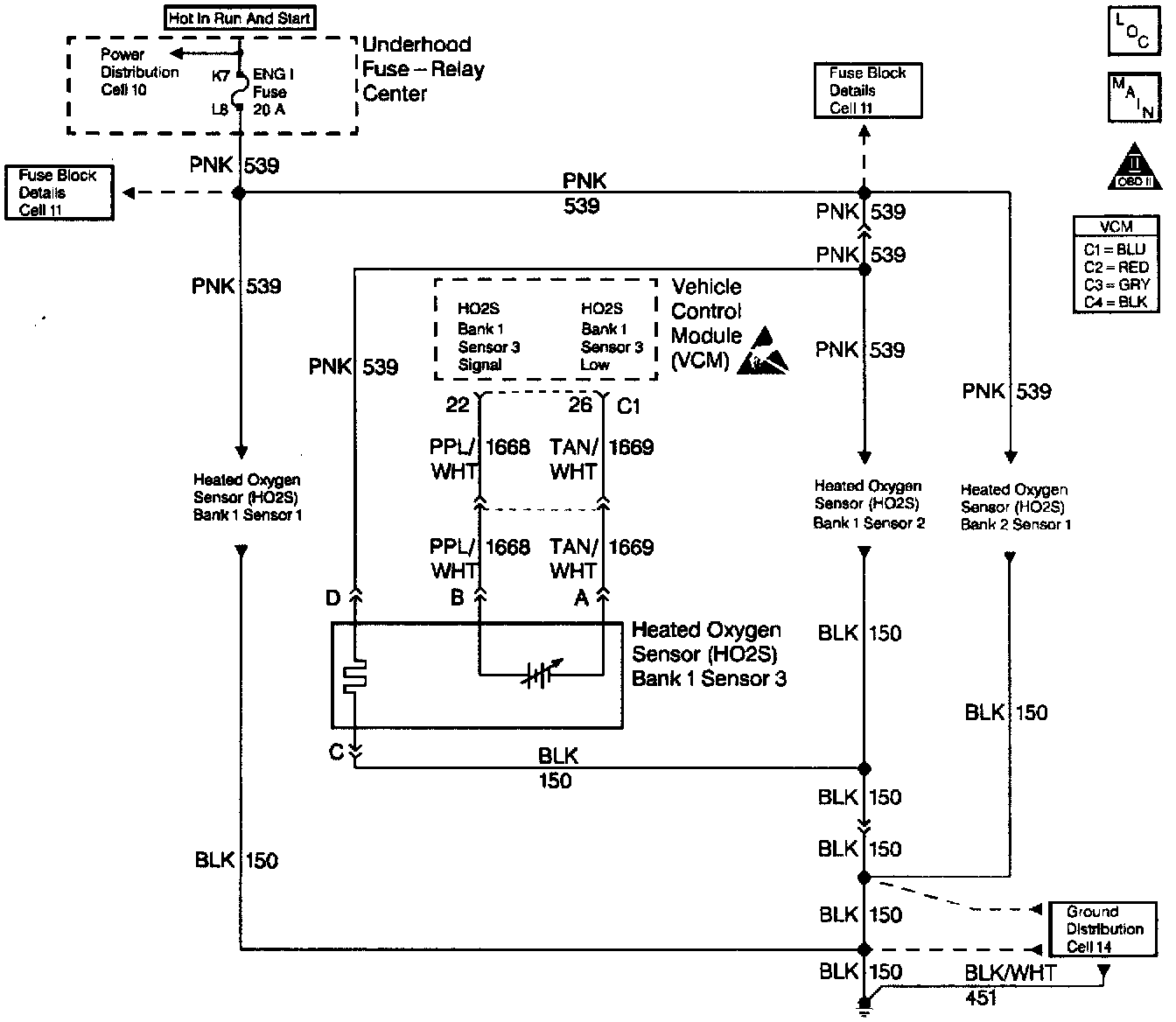 The VCM supplies a voltage of approximately 0.45 volts (450 mV) between the HO2S High and the HO2S Low circuits.