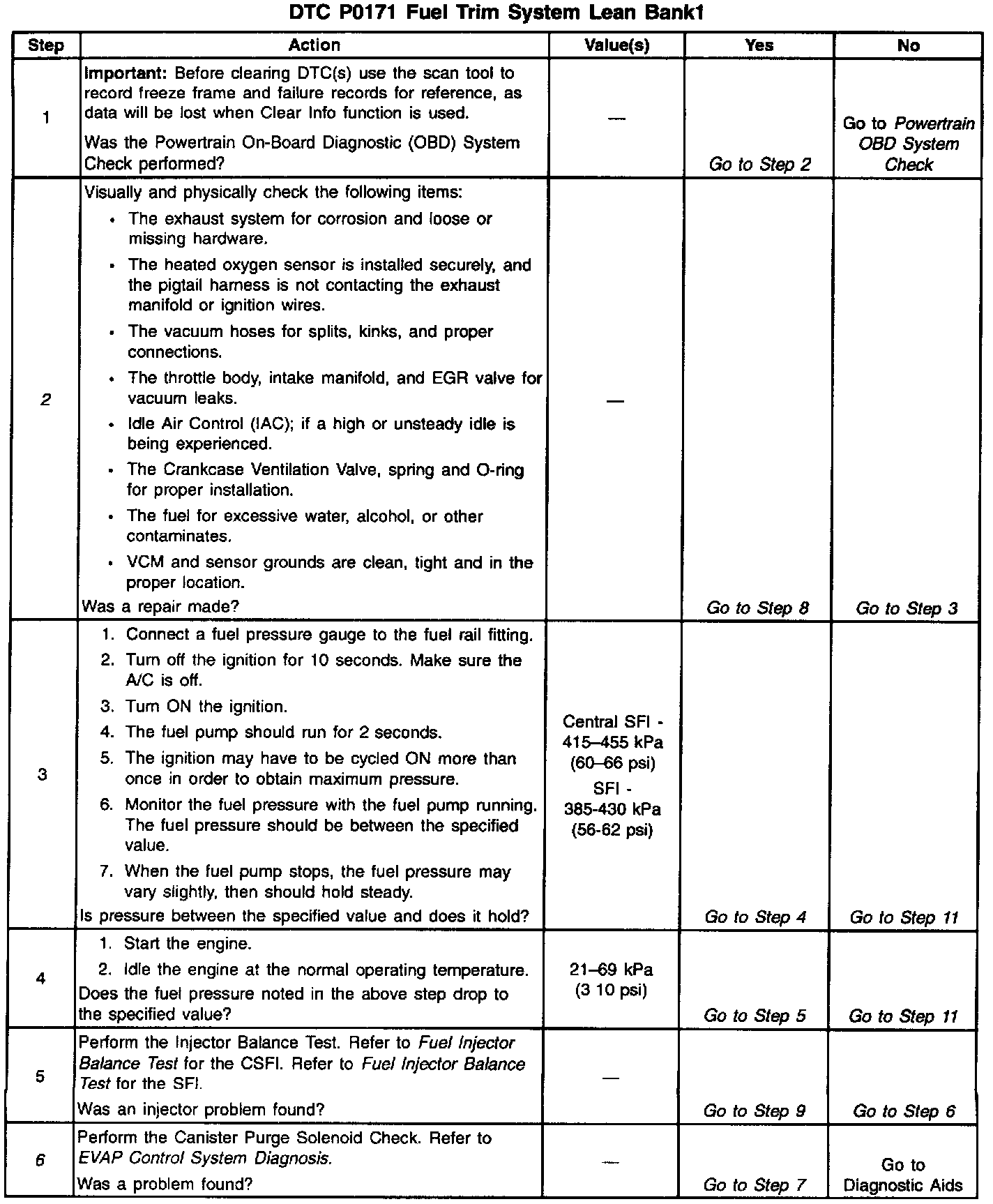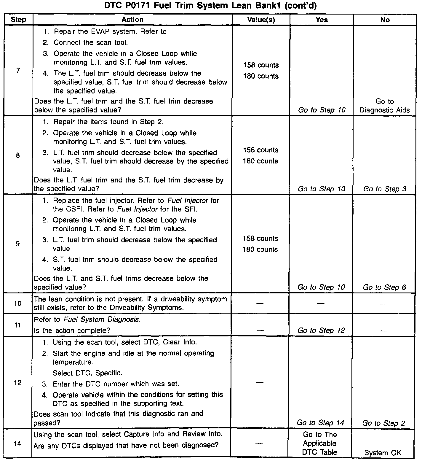 If using the diagnostic tables does not isolate the problem, try monitoring the L.T. fuel trim and fuel trim cell while operating the vehicle under various loads. This may isolate the condition which caused the setting of the current DTC.
