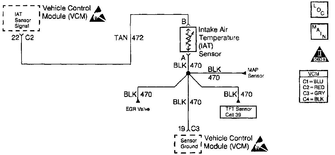 3. This test will bypass the IAT sensor and will confirm that the IAT Sensor circuit and the sensor ground circuit to the VCM are sound. Grounding the signal circuit will provide a low voltage input to the VCM. The VCM should recognize this low voltage and indicate high IAT temperature.