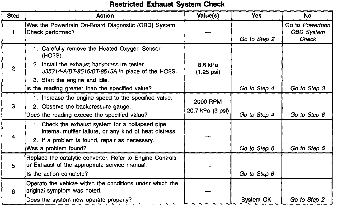 Restricted Exhaust System Check: