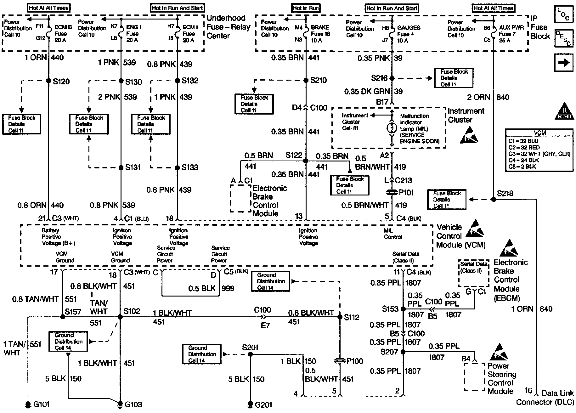 There should always be a steady Malfunction Indicator Lamp (MIL) when the ignition is ON and the engine is stopped. Battery voltage supplies the lamp. The VCM turns the lamp on by grounding the MIL control circuit whenever a DTC sets and the DTC meets the requirements for illuminating the MIL.