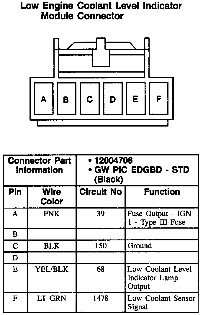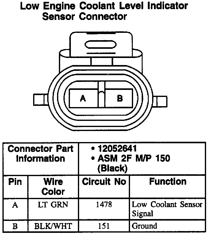Low Engine Coolant Level Indicator Sensor Connector:
