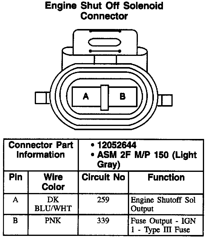 Engine Shut Off Solenoid Connector: