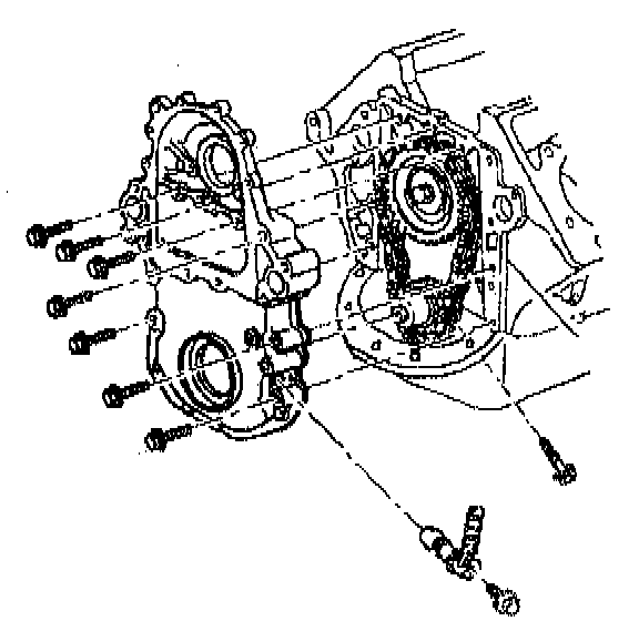 11. Remove the engine front cover and bolts.