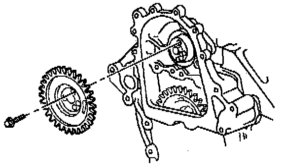 5. Install the fuel injection pump gear bolts and align the timing marks.