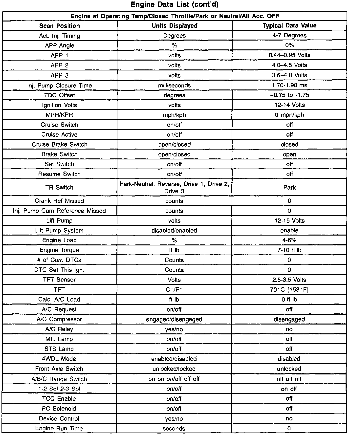 Scan Tool Data List