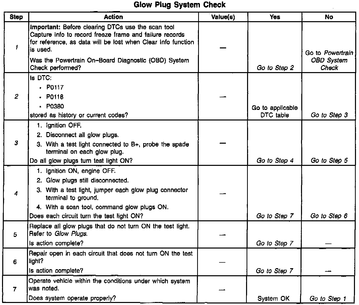 System Check - Glow Plugs