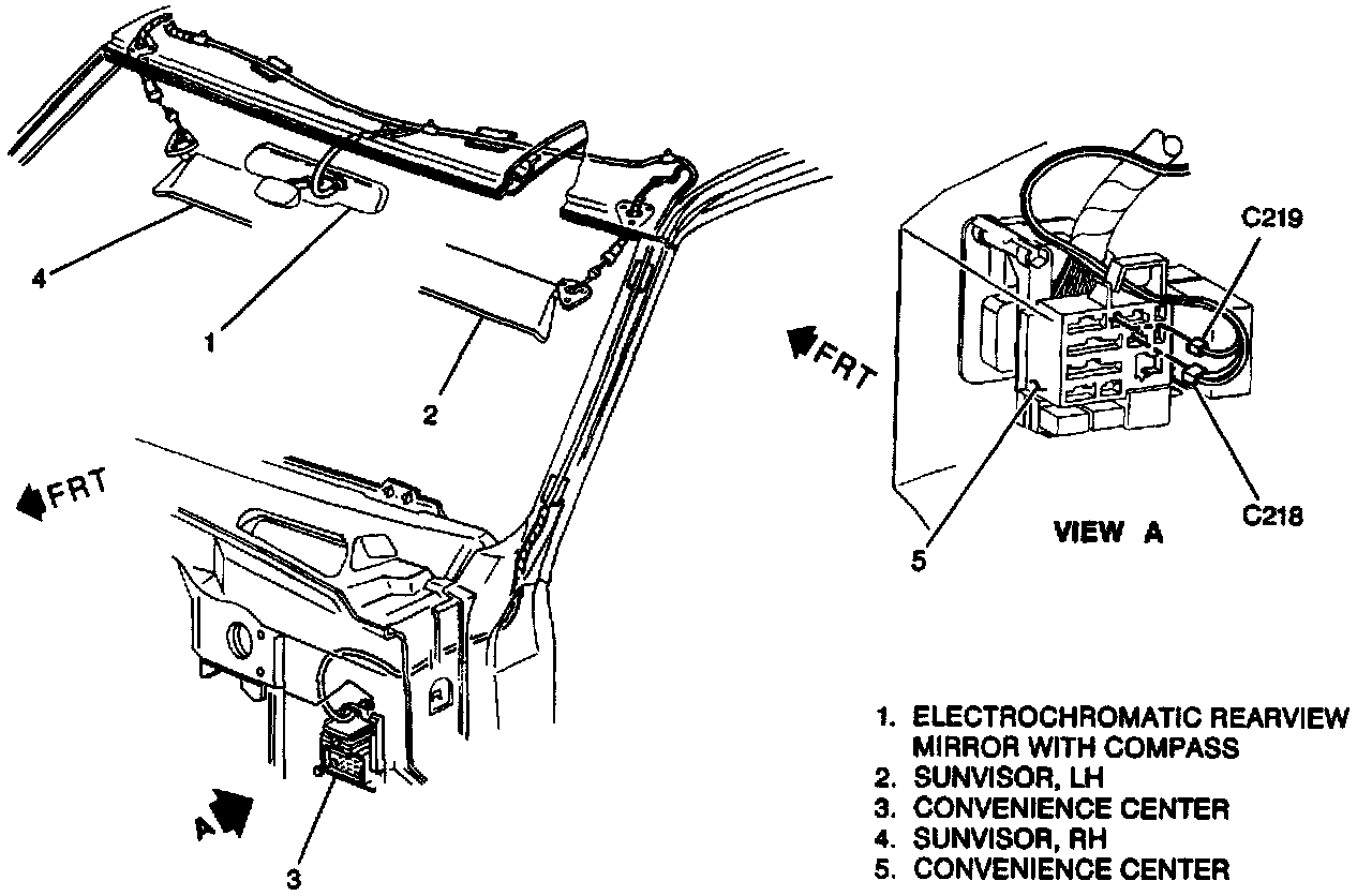 Electrochromatic Inside Rearview Mirror With Compass Wiring: