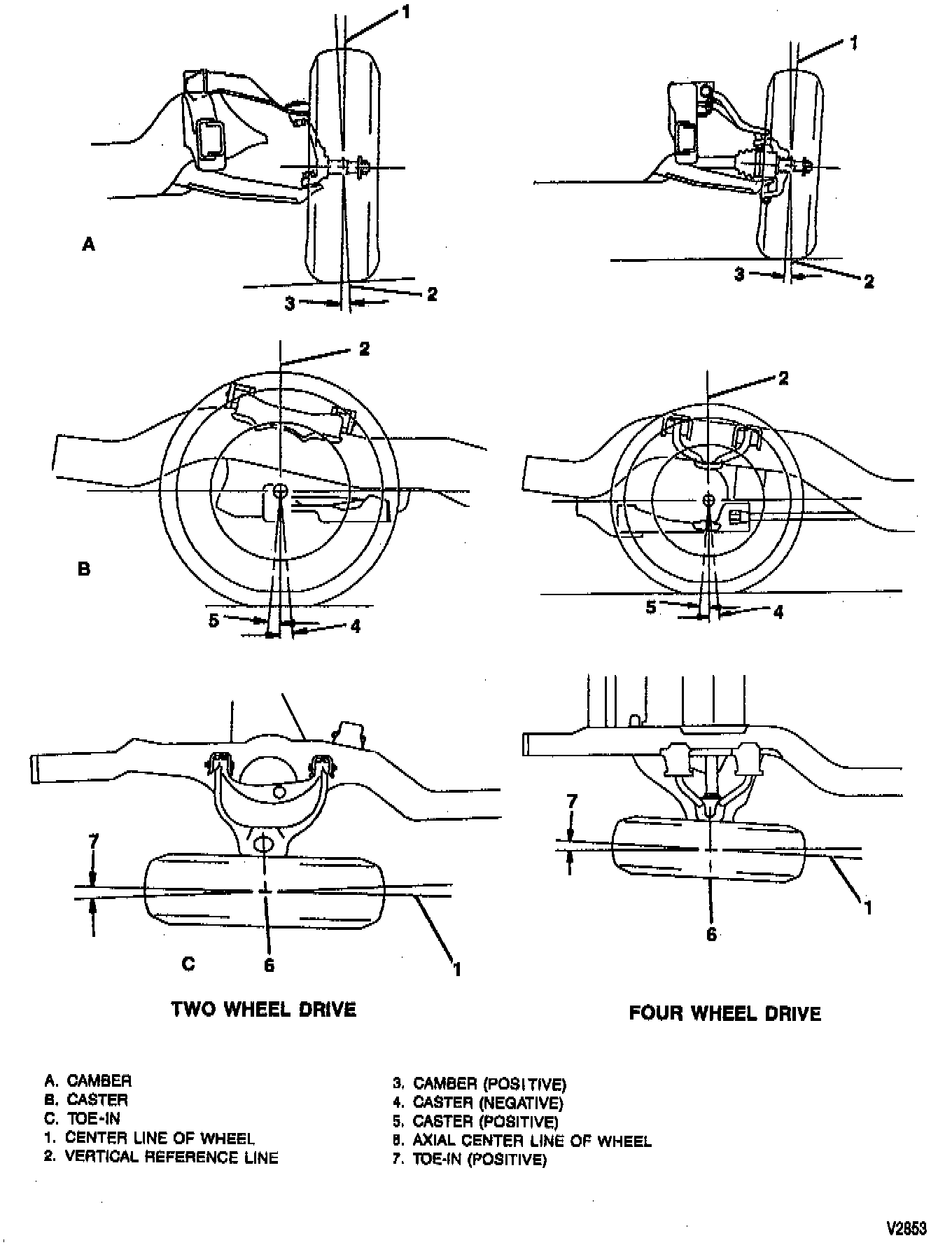 Proper front wheel alignment must be maintained in order to ensure efficient steering, good directional stability, and prevent abnormal tire wear.