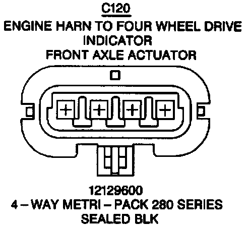 Engine HARN To Four Wheel Drive Indicator/Front Axle Actuator: C120: