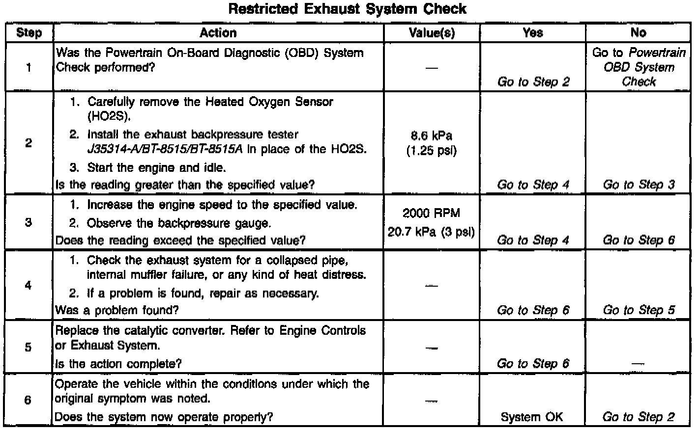 System Check - Restricted Exhaust