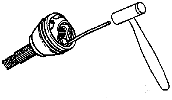 2. Use a brass drift and hammer to gently tap on the C/V joint cage until it is tilted enough to remove the first chrome alloy ball.