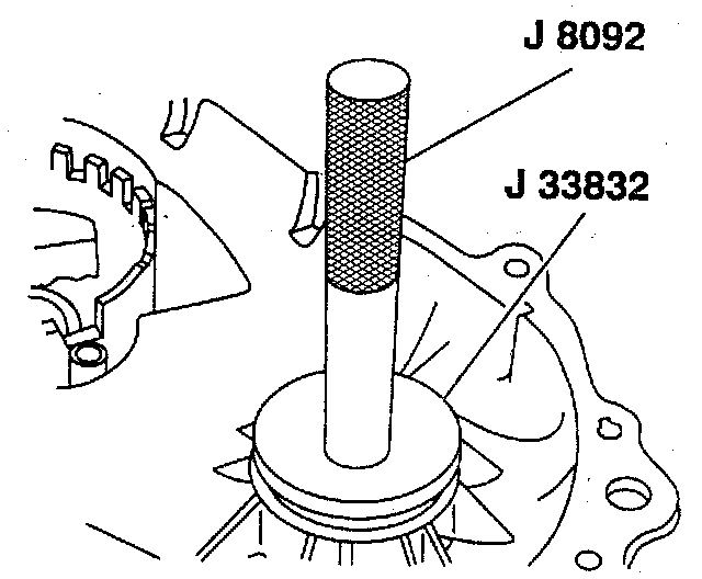 2. Front output bearing to the front case using J 8092 and J 33832.