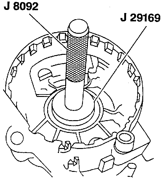 6. Front input bearing to the front case using J 8092 and J 29169.