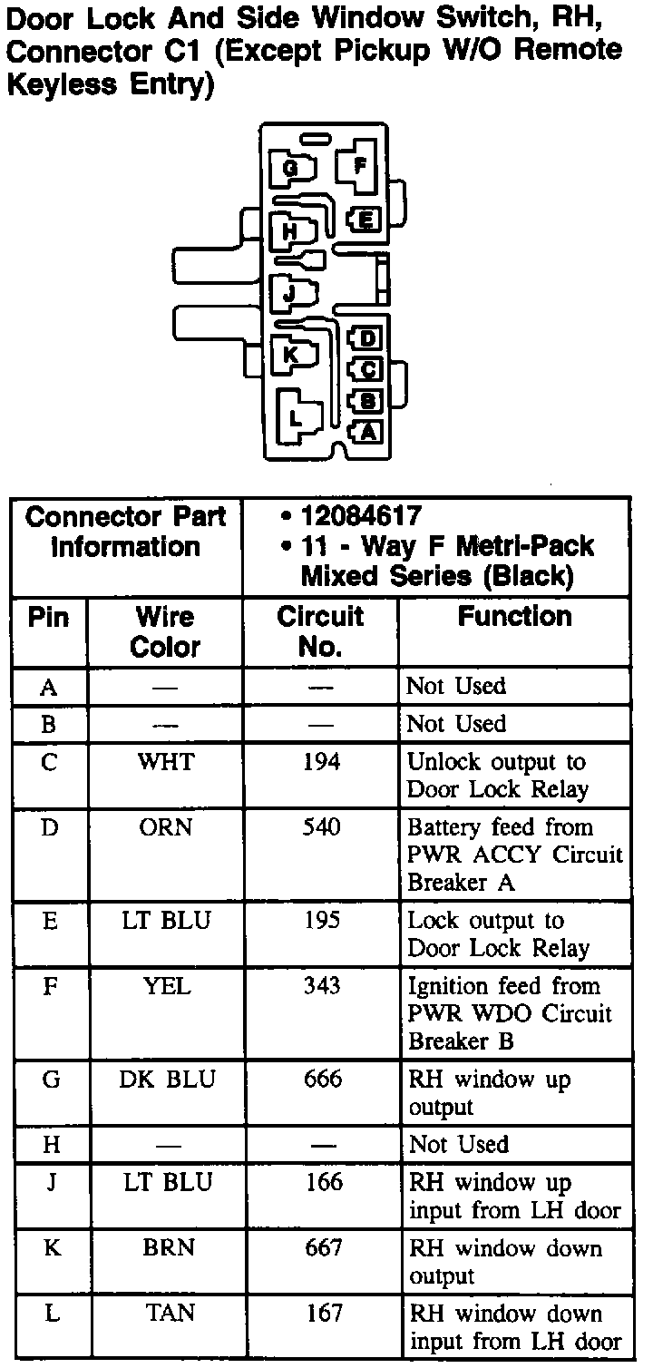 Door Lock And Side Window Switch, LH Connector: C1 (W/ RKE Or 2-Door):